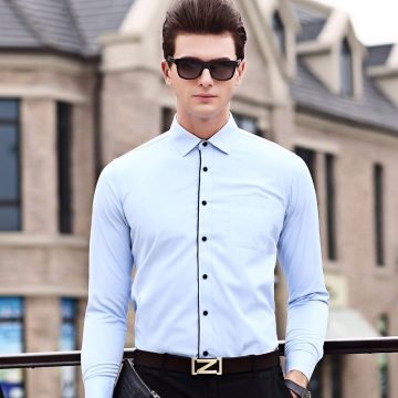 馬克羊襯衫男秋季新品男士中年長(cháng)袖純色開(kāi)衫輕奢商務男裝翻領襯衣YY7C-5